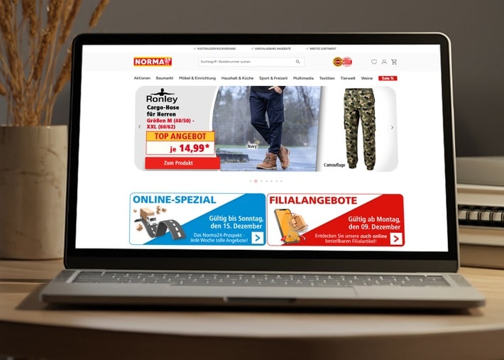 Regelmäßigen Nutzerinnen und Nutzern des NORMA-Onlineangebots wird die Veränderung bereits aufgefallen sein. Seit Anfang Dezember sieht der NORMA24-Shop noch moderner und klarer strukturiert aus. Der Hintergrund: Von der Umstellung auf die neue E-Commerce-Plattform Spryker sollen in erster Linie Kundinnen und Kunden profitieren. Für den Nürnberger Lebensmittel-Händler zielt die Weiterentwicklung des beliebten Onlineshops mit einem ansprechenden Design und erweiterten Funktionen auf ein zeitgemäßes Einkaufserlebnis ab. Dazu wurde die Nutzerfreundlichkeit durch die Systemumstellung erheblich gesteigert. Die neue Plattform überzeugt mit einem ansprechenden, klar strukturierten Design und einem intuitiven Layout, das die Navigation für die Kundschaft erheblich erleichtert.